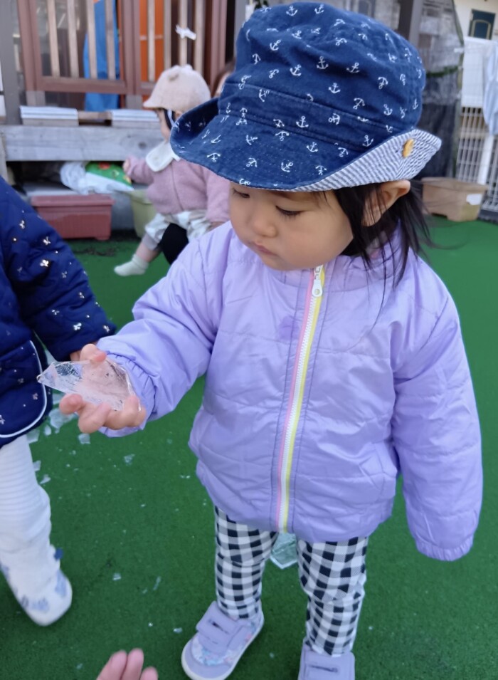 冬ならではの感触に触れて、不思議そうにしたり、笑顔が見られたり、色々な発見をたのしんでいたひよこ組さんでした!
