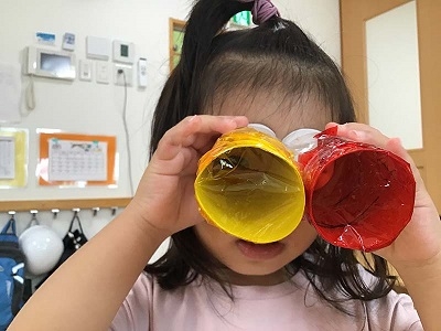 カラーセロファンで双眼鏡作り!