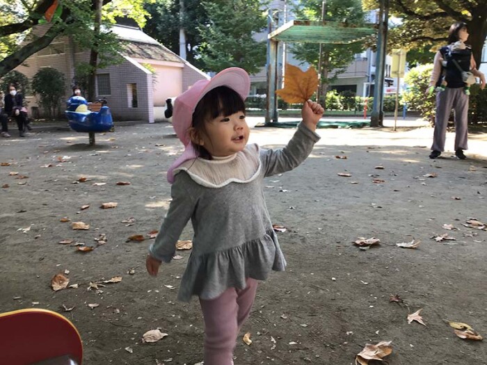 お散歩や遊びに行った公園で、どんぐり探しをしたり、落ち葉拾い、虫探しをして