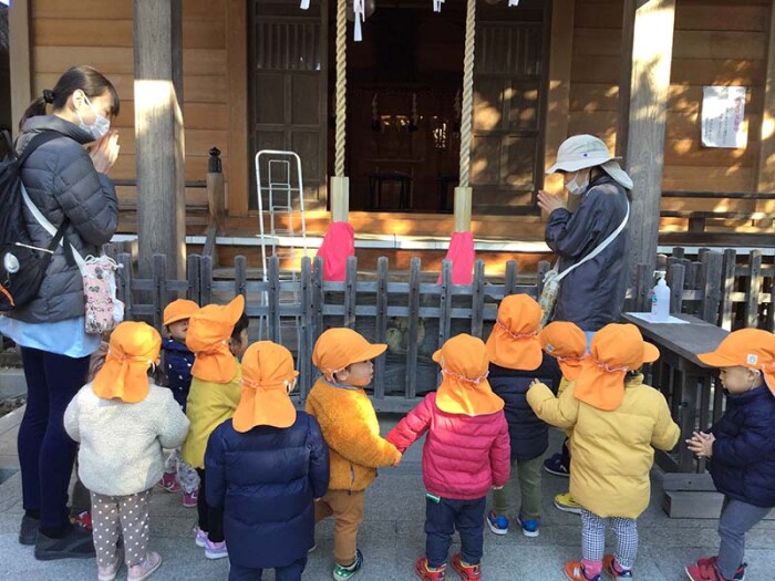 保育士の動きを真似てお参りしました!