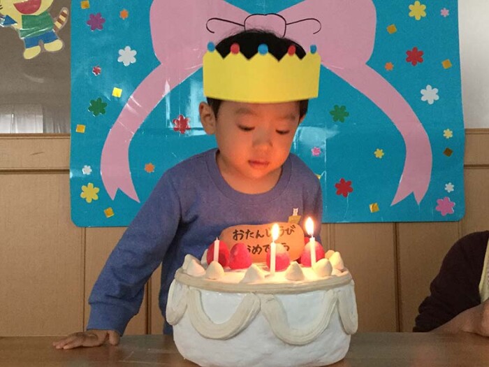 それからお友達からの「たんたんたん誕生日」や園長先生からの「うたえバンバン」の