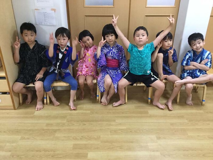 お部屋に入ってきた子ども達も浴衣や甚平、髪をセットしていたりとっても素敵でした!子ども達のテンションも上がっていましたよ⤴️