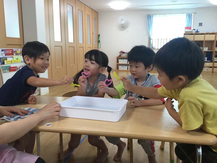 どうしたらしゃぼん玉は作れるんだろう…皆の頭の中の疑問は募るなか