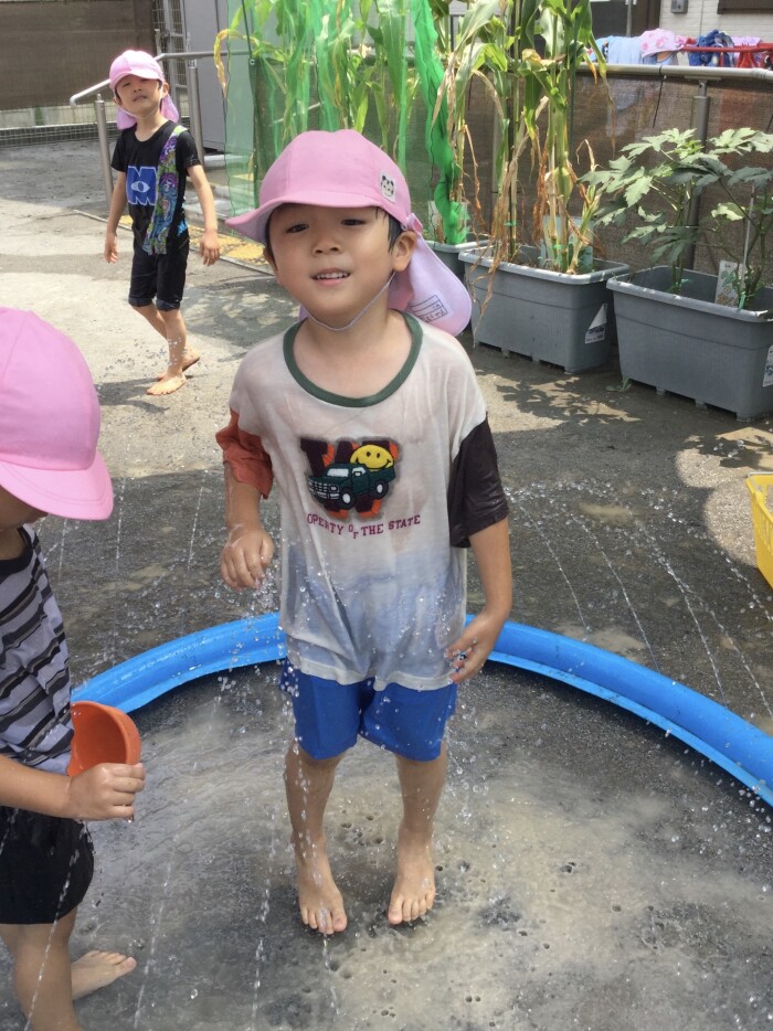 ぞう組さんの男の子は最初は水遊びにあまり興味なし!?