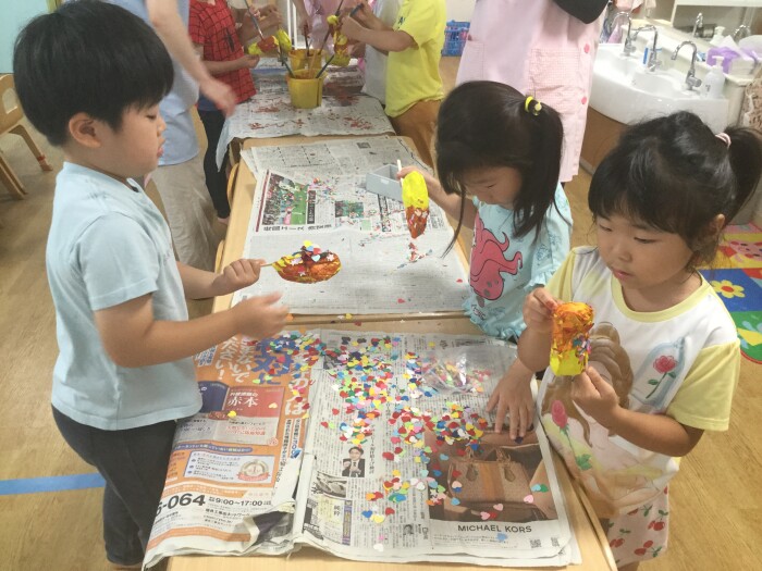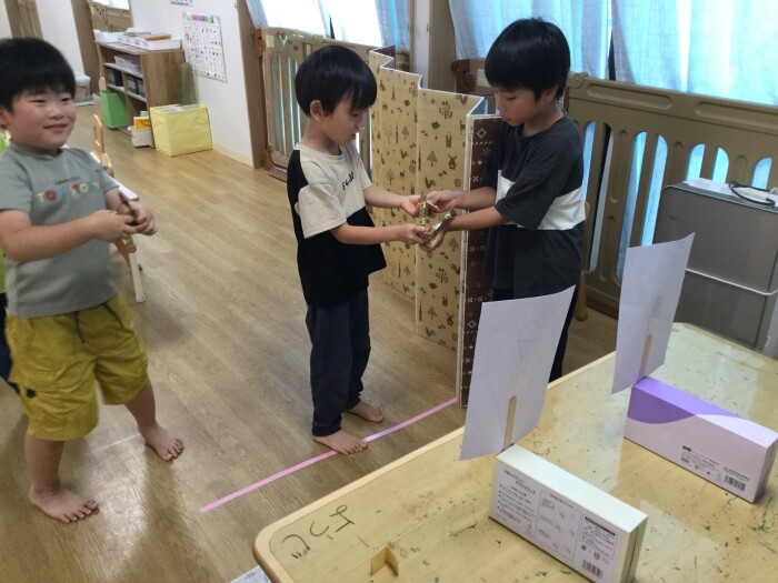 そこで保育士から、「射的って景品が必要だよね。景品で作りたいもの全部作っちゃおうよ」と言うと、みんな目を輝かせていました✨