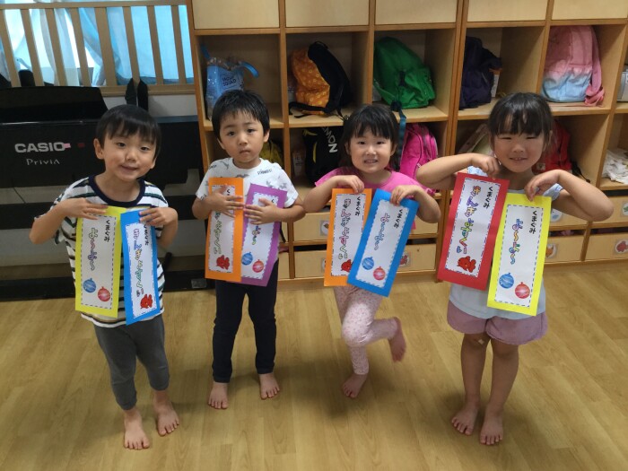 くま組さんは絵本のセリフからクラスの掛け声を作り、
