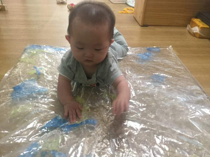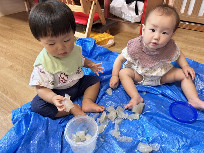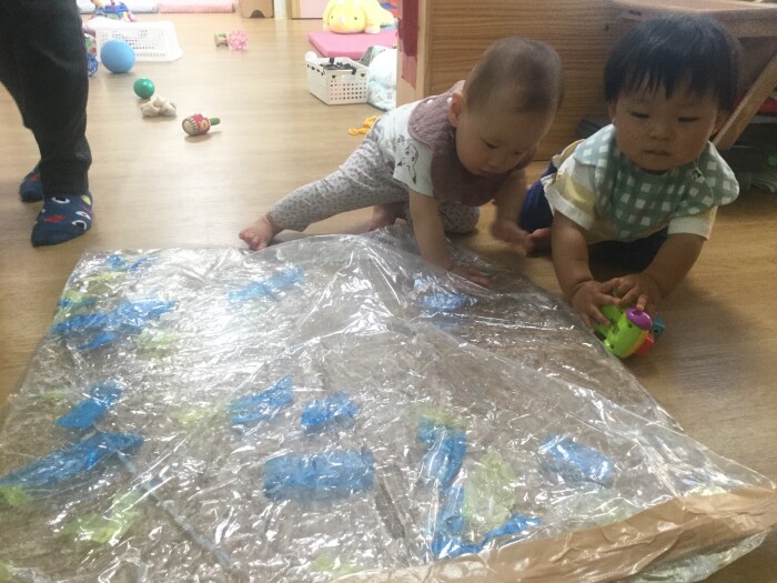 ウォーターベットも作って、冷たさや感触を楽しみました*