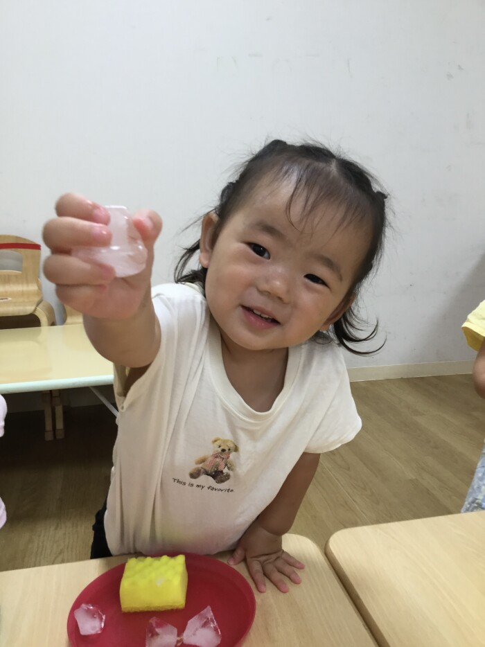 外遊びができない日も多かったのですが、室内でもブルーシートを敷いて、水遊びをしたり、氷遊びをしたりしました。