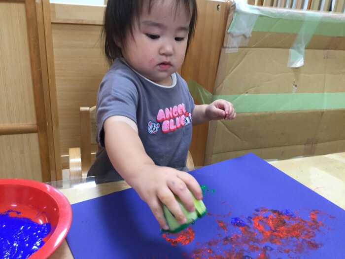 野菜スタンプで花火制作も楽しみました!綺麗に型がつくと、