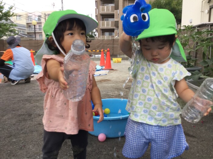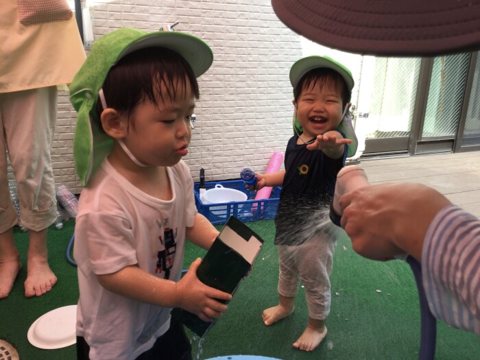 みんな水遊びが大好きで、洋服がずぶ濡れになるまでペットボトルやジョウロで遊び込む姿が見られていましたよ!