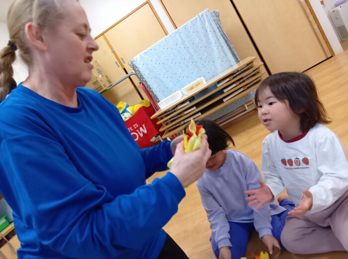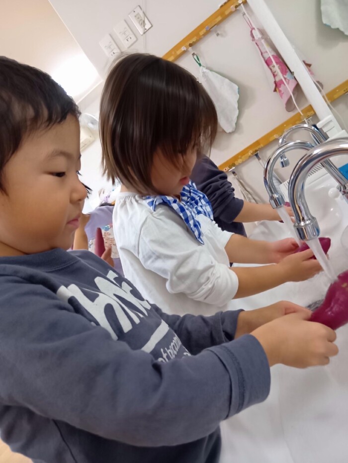 暖かさが残るお芋に、 「あったかいね」「ほかほかだね」とにっこり。