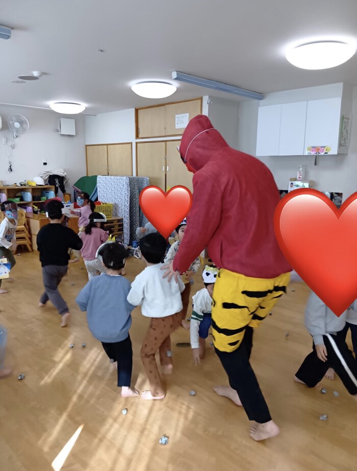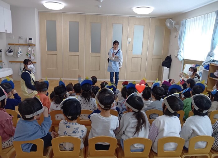 2/3は節分の日でした。節分前から制作や絵本で行事に触れていたので、子どもたちは「ソワソワ」「ドキドキ」な様子でした。