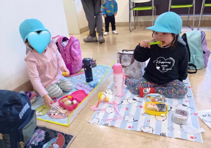 早くお弁当の準備をして、みんなもりもり嬉しそうに食べていました!