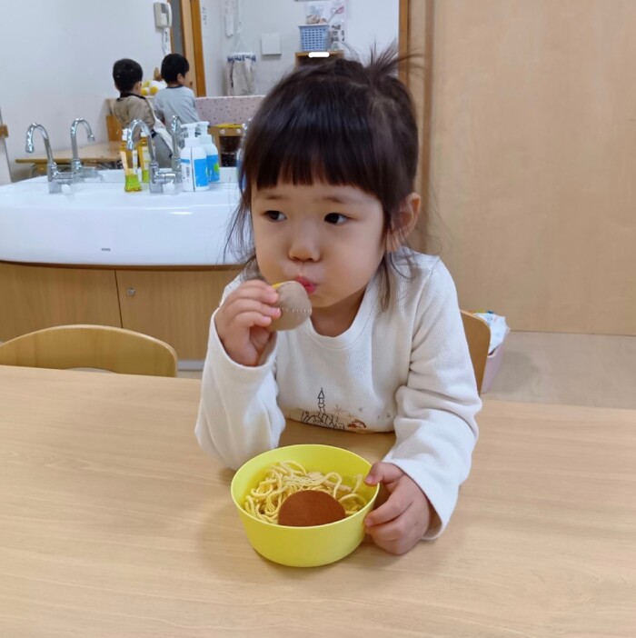 ラーメン屋さんや粘土、お絵描きなど座って遊ぶ事が増えてきました!