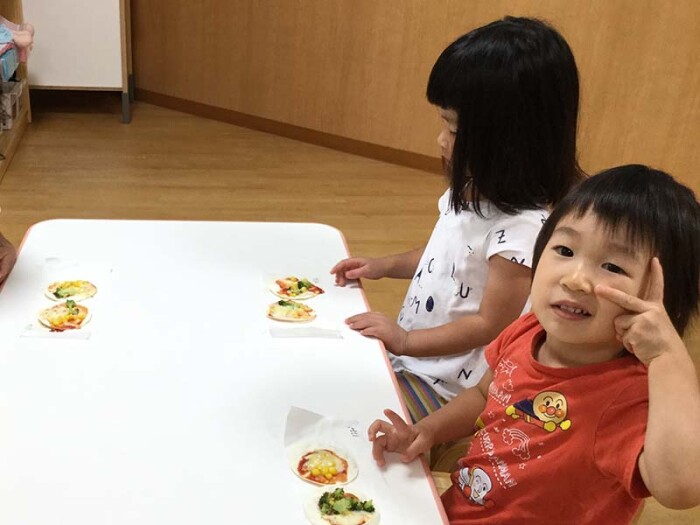 7月21日(木)今日は食育活動として【ピザ作り】のクッキングを行いました?