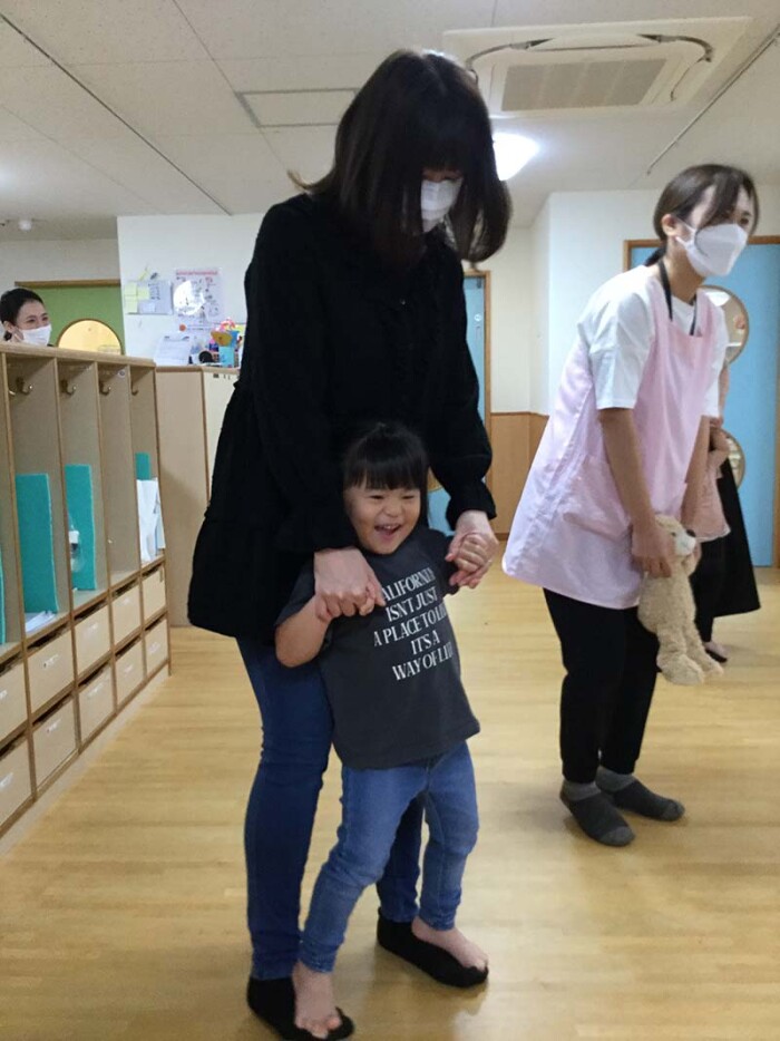 「ママも一緒にやろ~」ということで、一緒に踊ってもらえて嬉しそうですね!