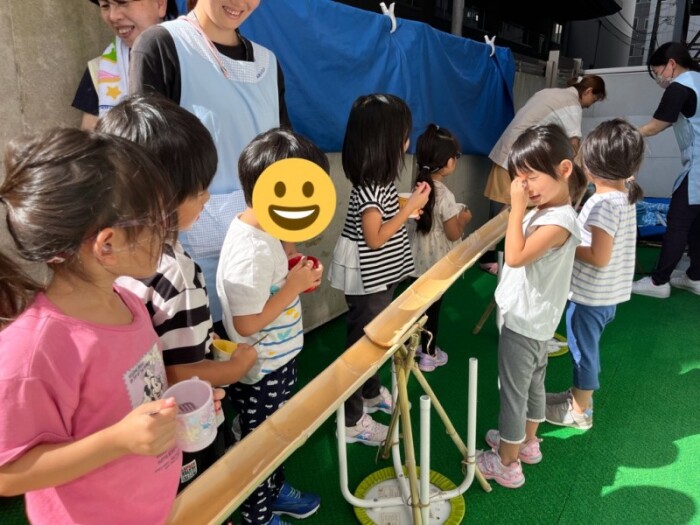 ぞう組(年長)の「流しそうめんなってみたいー」という発案からどんどん話が膨らみ、