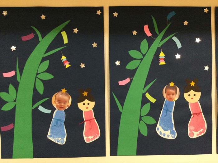 玄関飾りや、各クラスの壁面飾りも七夕飾りになっています♪